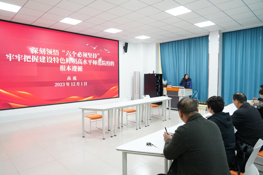 高霞在党课中以“深刻领悟“六个必须坚持”牢牢把握建设特色鲜明高水平师范院校的根本遵循”为题,结合自身学习体会,联系公司实际,与大家深入交流。高霞指出,党的二十大报告用“六个必须坚持”概括和阐述了习近平新时代中国特色社会主义思想的世界观和方法论,这一思想的世界观和方法论坚持和发展了马克思主义世界观和方法论,是中国化马克思主义世界观和方法论的最新成果。从理论、历史、实践三重逻辑来深刻理解这一思想的世界观和方法论,对于坚定理论自信,增强历史自觉和实践自觉,进而把握好和运用好“六个必须坚持”具有重要意义。