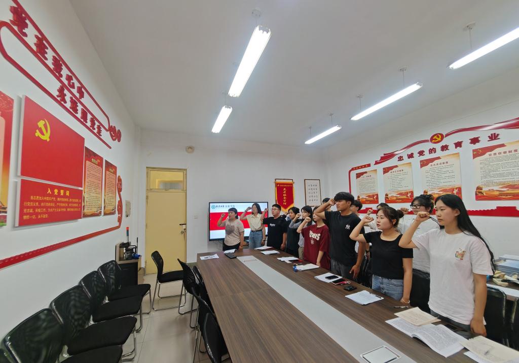 会后,由员工党支部书记娄敬同志带领全体预备党员宣读入党誓词。
