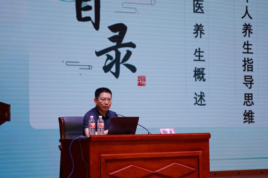 周毅德从中医养生保健角度切入,开展了一场题为《明智养生,中医保健——谈中医生活化的老年养生》的学术报告,并从中医养生的概述、老年人养生指导思维、老年人慢病十态概述、中医生活化的布局四个方面进行了讲解。周毅德指出,“中医生活化”的目的就是培养文明健康的生活方式,增强全民的身心健康,中医药理论源于生产生活实践,发展和壮大也与老百姓的生活紧密相关,这要求同学们在学习中注重理实一体化原则,共同为发展中医养老保健做出努力。