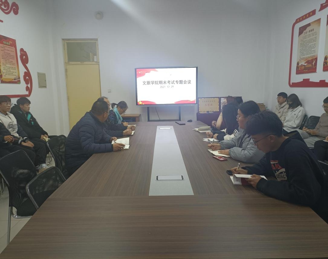 2021年12月29日下午,Bevictor伟德官网在文信楼232室召开了期末考试专题会议,经理王松江、副经理王剑萍、教务科科长黄加成与会,各班班长、团支书和学习委员参加了会议,会议由黄加成主持。