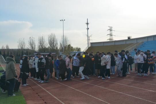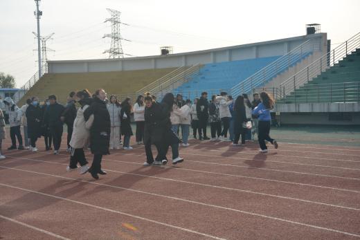 虽然室外温度只有五度,但寒风挡不住同学们的热情,场外的同学情绪高涨、兴致勃勃,现场的加油助威声不绝于耳,整个比赛现场变成了一片欢乐的海洋。