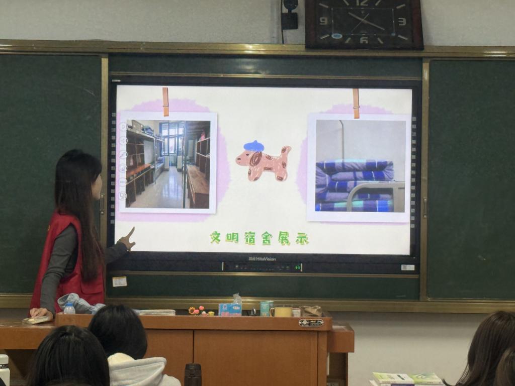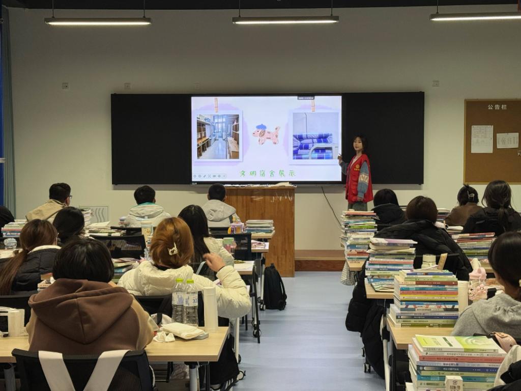 此次教育由赵语童和石薪祺主讲,围绕宿舍、餐厅、教学楼等公共场所的礼仪规范,为新生进行讲解,强调了文明礼仪对个人集体的重要性,引导同学们树立正确的行为准则。