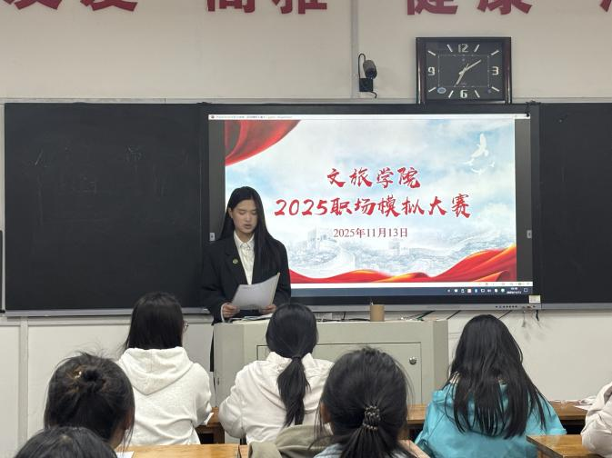 比赛现场气氛紧张而热烈。参赛选手们在模拟职场情境中沉着自信、才思敏捷,充分展现了文旅学子扎实的专业知识、灵活的应变能力与卓越的综合才华。