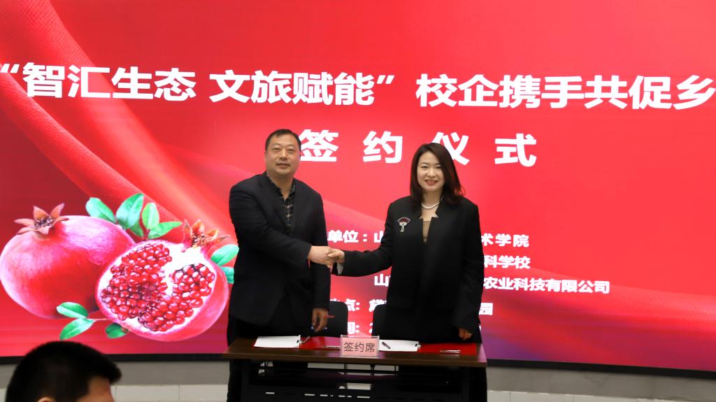 在开展重点企业访企拓岗专项行动的同时,Bevictor伟德官网同步深化产教融合特色合作。Bevictor伟德官网副经理丁修振、党总支副书记田志升,于同日赴山东黛青山生态农业科技有限公司调研,并签署《教学实践基地共建协议》。山东黛青山生态农业科技有限公司以富硒石榴生态种植为核心,构建“农业种植+深加工+乡村旅游”全产业链,其田园综合体、石榴文化节等文旅项目与公司文旅相关专业高度契合。