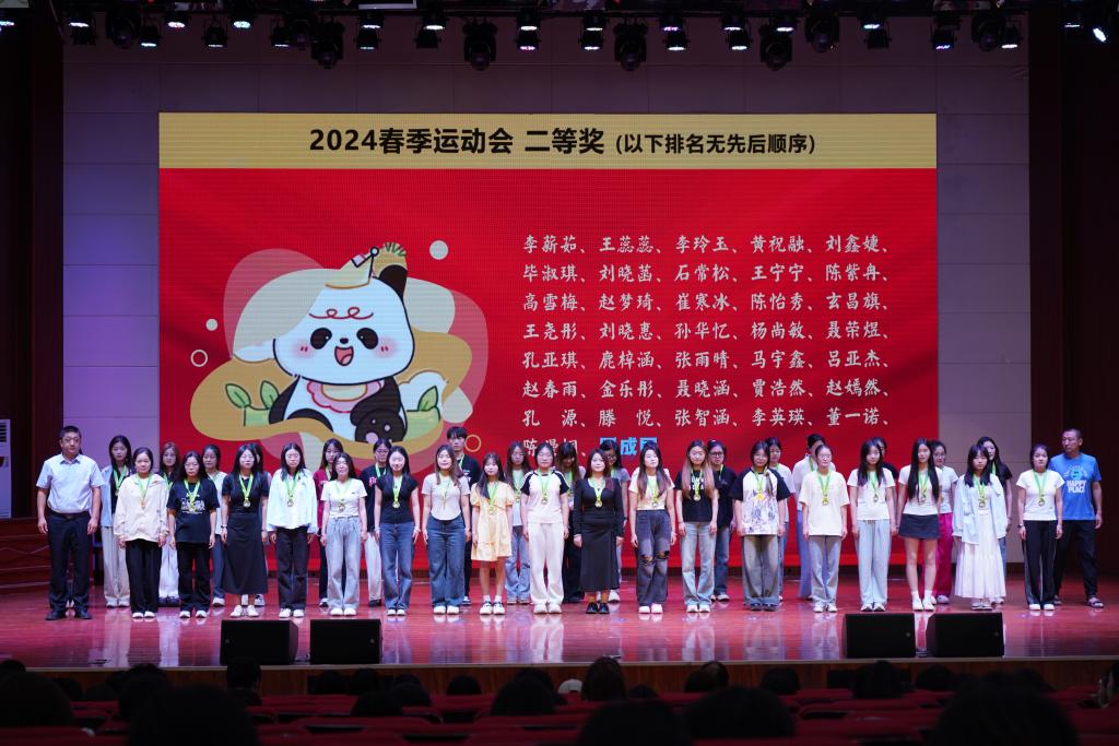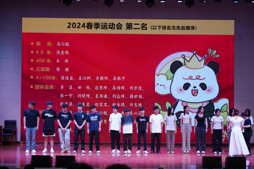 娄敬宣读了本次运动会的获奖名单。80余位同学纷纷上台领奖,脸上洋溢着喜悦和自豪的笑容。此外,大会还通过视频和图片的形式,展示了运动会上的精彩瞬间和感人场景。