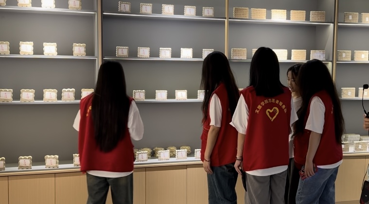 随后,队员们前往艾草商品展厅进行参观。齐艾文化产业园以艾草为抓手,研制出了功能齐全的艾草产品。踏入展厅的那一刻,队员们就被艾草的清香所包围,各式各样的艾草产品让队员们大开眼界。在宣讲员的讲解下,队员们对许多艾草产品的制作过程与功效有了深入的了解。