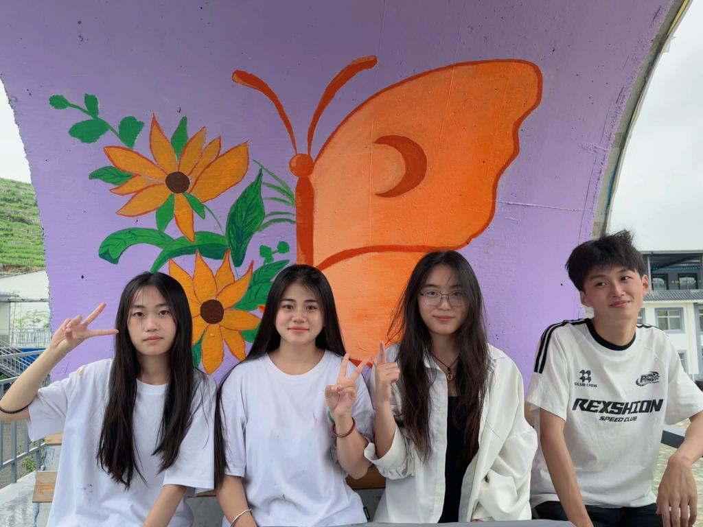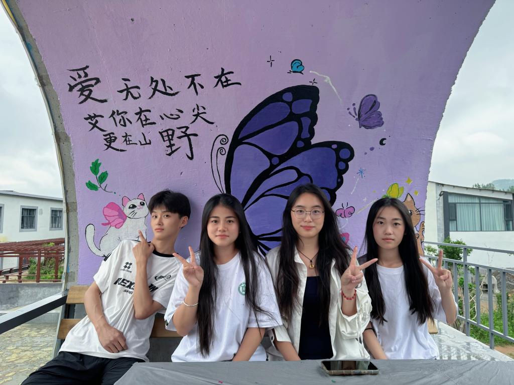 这次三下乡社会实践活动,让一幅幅的画稿,在乡村的墙上绽放。我绘出希望,也绘出对未来的期待,每一笔都是对美好生活的向往。点点汗水,滴滴友情,累并快乐着。
