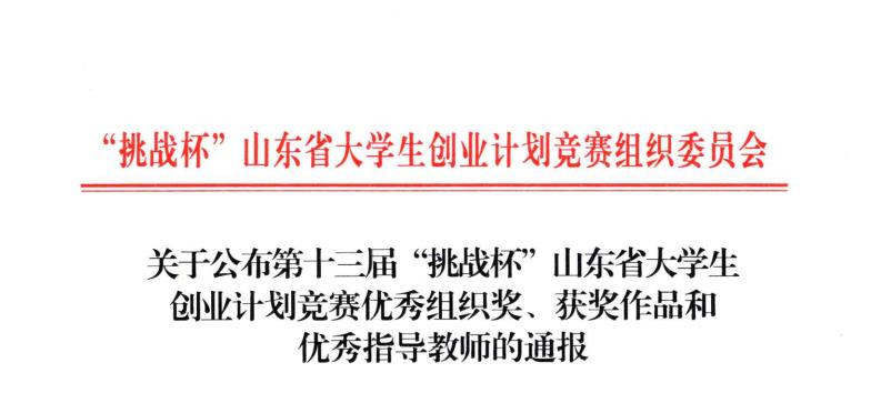 近日,“挑战杯”山东省老员工创业计划竞赛组织委员会发布了《关于公布第十三届“挑战杯”山东省老员工创业计划竞赛优秀集体、个人、作品的通报》,由张渊、高馨、丁修振、杨学敏等老师指导的《非遗文化传承从儿童抓起》项目首获铜奖,成绩位为铜奖奖项的前列,张渊老师获得优秀指导教师奖,实现了省“挑战杯”老员工创业计划竞赛奖牌的突破。