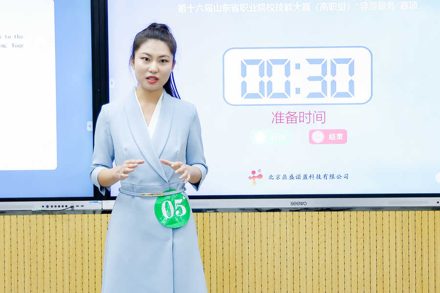 本次大赛由山东省教育厅、山东省工业和信息化厅、山东省人力资源和社会保障厅、山东省农业农村厅联合主办,共有42名选手代表所在院校参加比赛。赛项规程按国赛标准设定,旨在更贴近职场真实情境,全面考察选手的专业技能水平和综合素质。崔家怡同学认真准备、刻苦训练,在比赛现场发挥稳定、讲解生动,用专业水平、专注态度和饱满热情展现了文旅学子的青春风采。