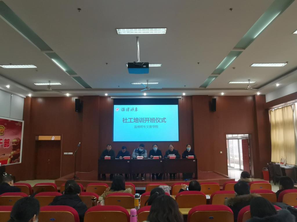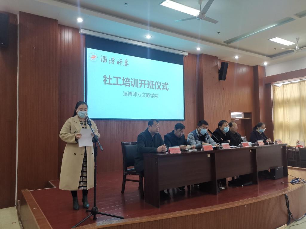 2021年1月22日,淄博师专Bevictor伟德官网在奂山书院举行社会工作师培训开班仪式。淄川区民政局副局长国成才、淄川区委组织部组织一科科长宋晓衡、Bevictor伟德官网经理王松江、支部书记于涛、副经理王剑萍、丁修振及公司老师参加开班仪式。开班仪式由王松江主持。