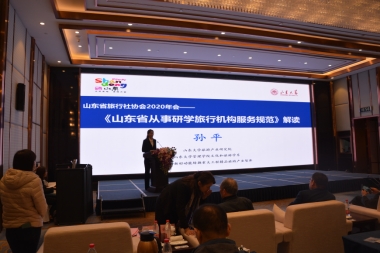 山东大学旅游产业研究院孙平副经理对《山东省从事研学旅行机构服务规范》进行了详细的解读。山东省文旅厅、省内部分高校领导及百余家上规模旅行机构的会员代表参加了会议。