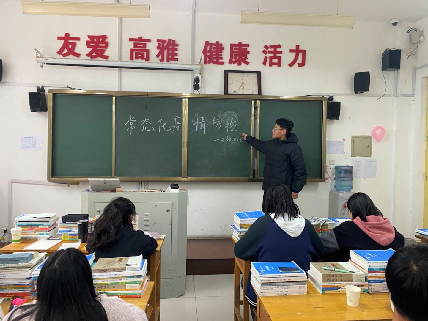 2.各个班级同学积极讨论认真学习疫情防控知识。