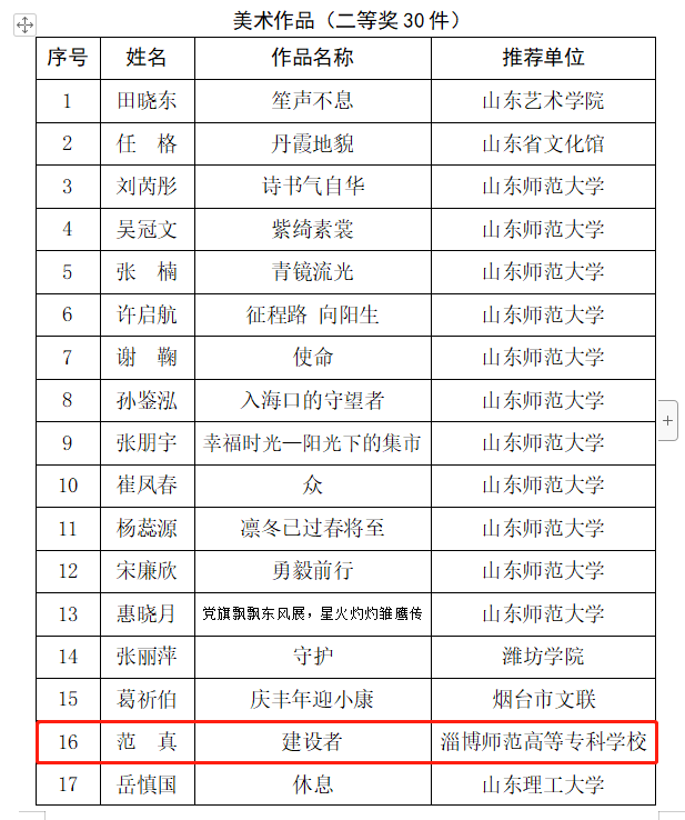近日,由山东省社会科学界联合会、山东省文学艺术界联合会主办的山东省社科界第九届人文艺术作品大赛获奖作品公布。公司公司教师范真教授的油画作品《建设者》赫然在列,荣获二等奖。