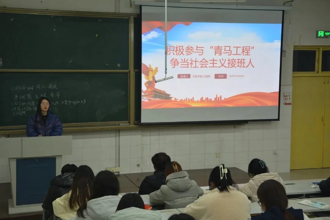 随后,为继续推进“青年马克思主义者培养工程”,提高青年员工干部责任与担当精神, 学工科辅导员马明珠向同学们阐释了什么是青马工程,为什么组织开展青马工程培训班,以及作为员工骨干应当如何做好本职工作。同时寄语同学们青春是人生的宝贵时光,同学们要积极进取、积蓄力量,为中华民族向第二个百年奋斗目标进军的过程中贡献属于自己的力量。