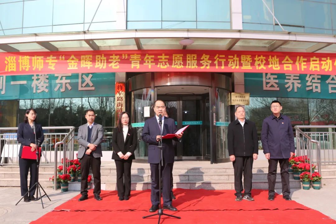 3月1日,淄博师专“金晖助老”青年志愿服务行动暨校地合作启动仪式在淄川区留仙湖老年养生中心举行。淄川区民政局局长张行海、淄博师专党委副书记刘红秀出席活动并为仪式揭牌,将军路街道办事处副主任徐贝、淄博师专团委、Bevictor伟德官网负责同志及部分师生代表和留仙湖老年养生中心员工参加启动仪式。