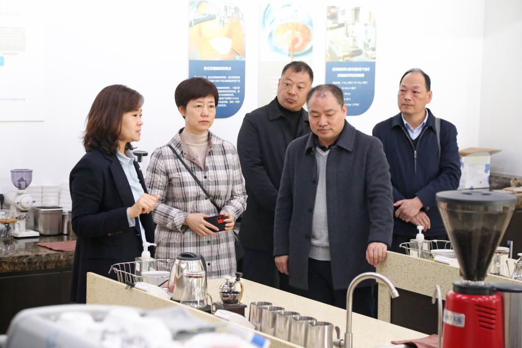 周巧玲一行首先参观了现代管理服务公司康养实践教学基地、科研创新区、会议会展实验室、礼居教学酒店、酒水实验室、咖啡实验室等实验实训场所,详细咨询了现代管理服务公司在实训室建设、产教融合办学等方面的情况。