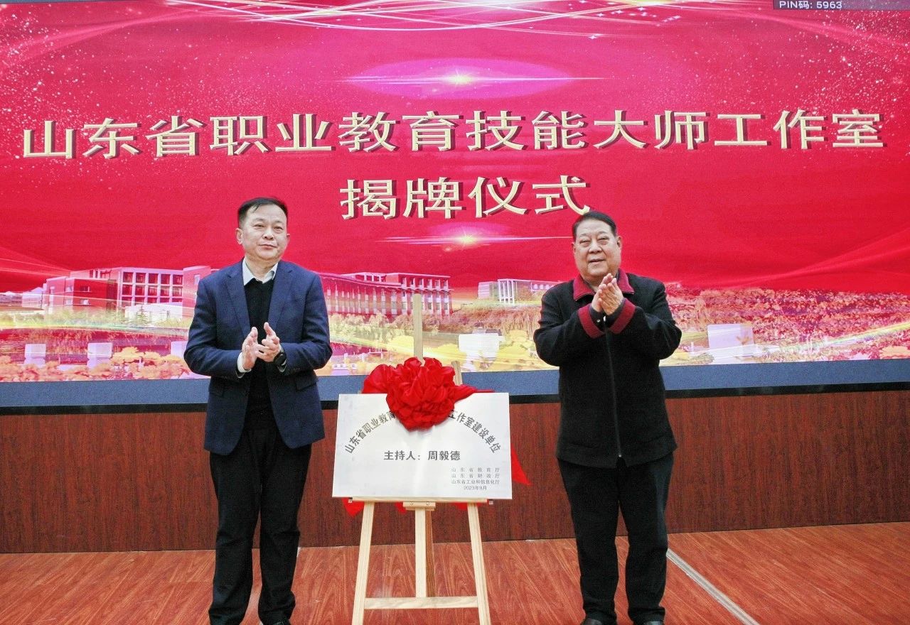 淄博市卫生健康委员会党组成员、副主任、三级调研员刘道德,岜山集团创始人、淄博万杰肿瘤医院终身名誉经理、教授孙启玉,共同为山东省职业教育技能大师工作室揭牌。