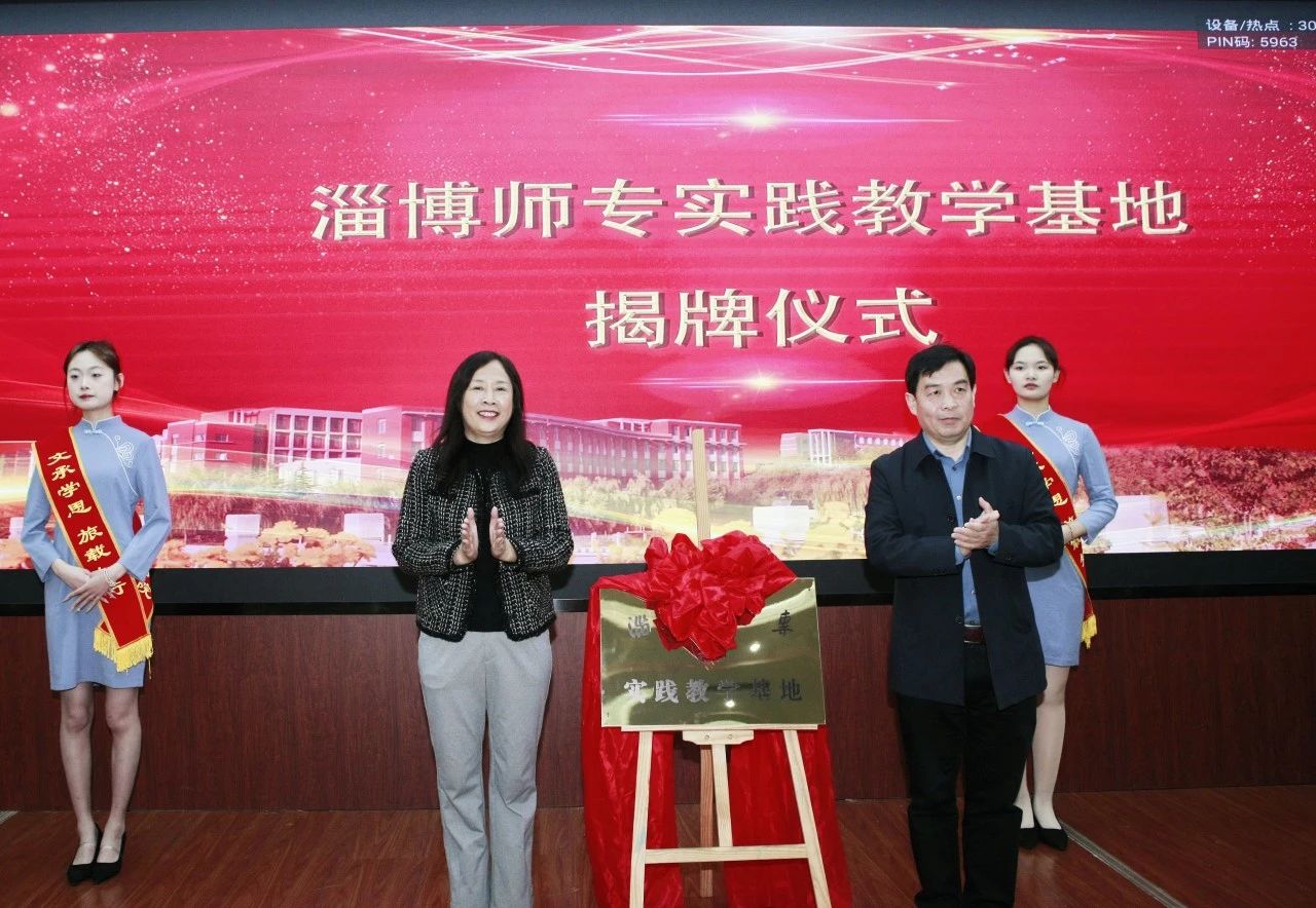 公司党委副书记、董事长高霞,淄博市委教育工委副书记、教育局党组成员李效同,共同为淄博师专实践教学基地揭牌。