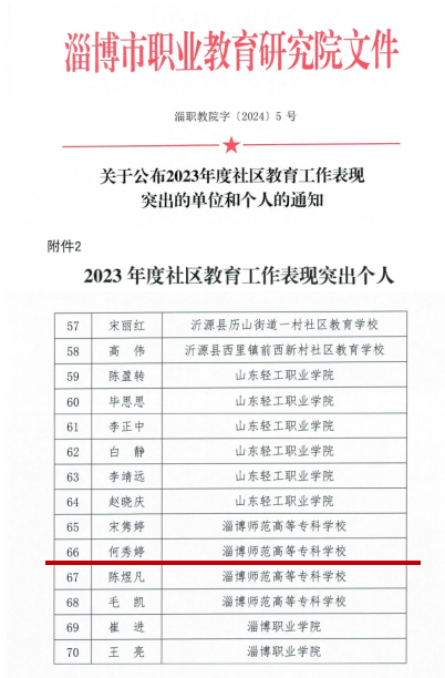 近日,公司教师何秀婷获得我市“社区教育工作表现突出个人”的称号。