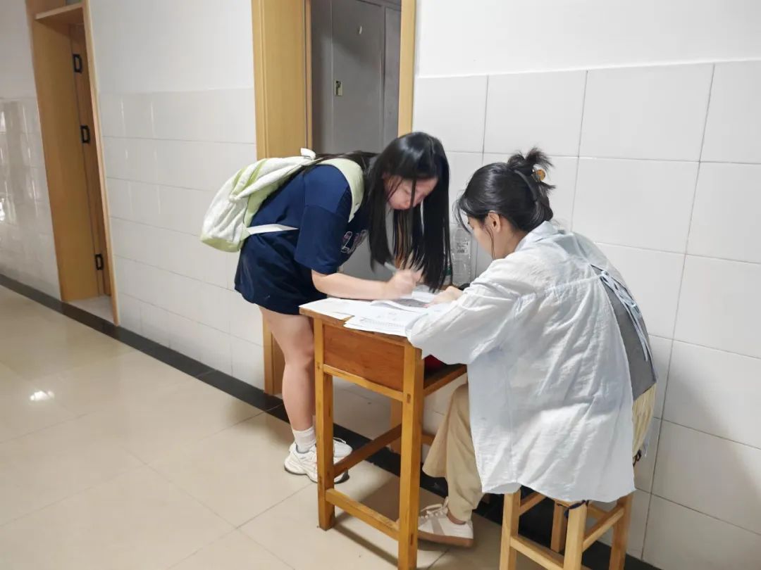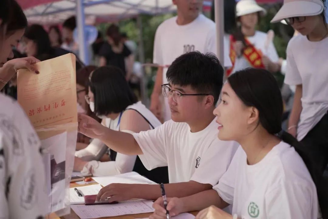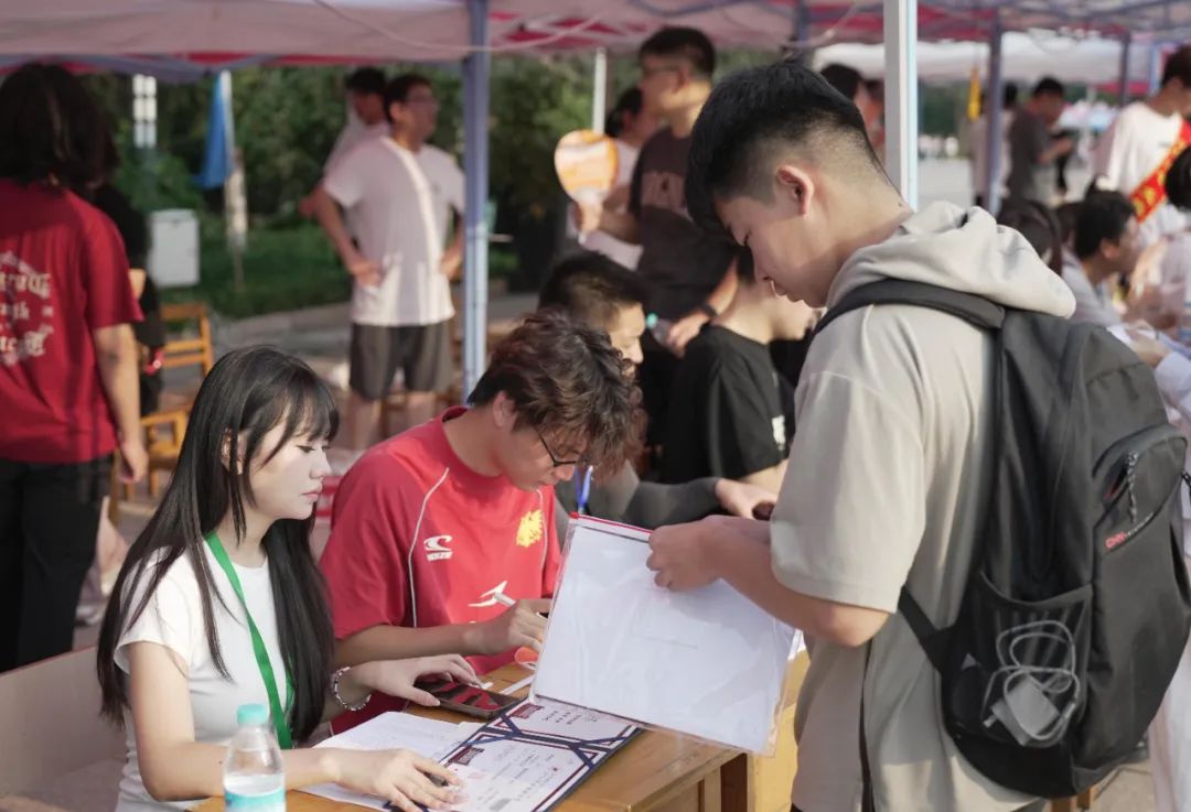来到班级报到处,新生们在这里完成注册、交接材料、咨询信息,每一个环节都井然有序。班导班助主动与新同学交流,贴心的志愿者在旁边解答疑惑,介绍公司的活动,现场既温馨又有序。