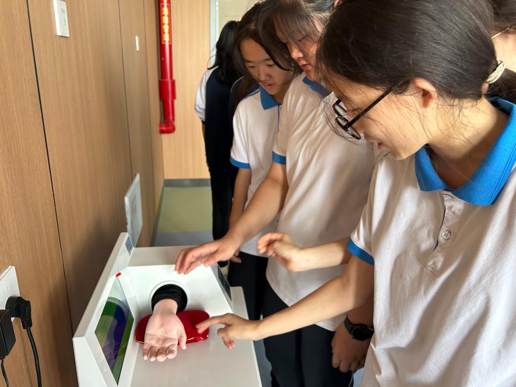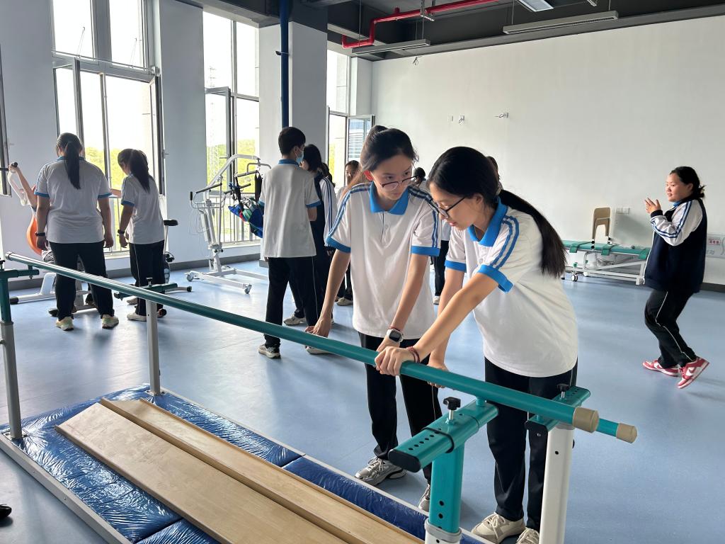 会后,来访师生前往北校区实验实训中心参观学习。黄加成、张家才两位老师详细介绍了实训中心的建设情况。员工们在老师指导下动手体验了电动颈椎牵引椅、脉象模拟器和康复平行杠等实验实训设备,亲身感受了智慧健康养老技术的实际应用场景。