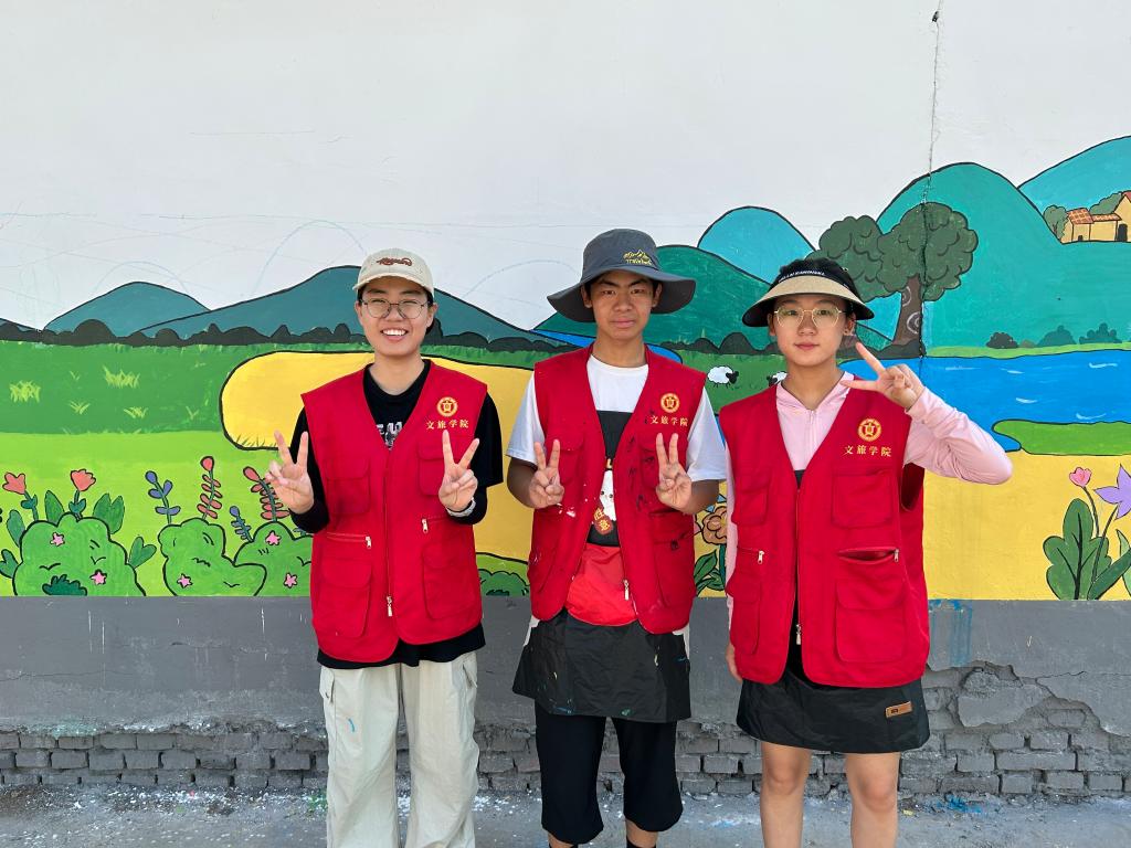 此次实践活动为文旅学子提供了宝贵的实践教学平台。面对复杂的墙面条件和多变的天气状况,实践团队及时优化创作方案,展现了扎实的专业素养和应变能力。当村民对墙绘作品产生文化共鸣,主动参与互动交流时,师生们深刻认识到艺术创作必须扎根人民、服务大众的本质要求。