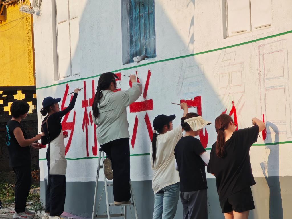 实践团队立足乡村文化特色,以墙绘艺术为载体,将传统村落文化元素与现代乡村振兴主题有机融合。团队成员克服高温天气等困难,严谨细致地完成每一处线条勾勒和色彩调配,确保作品的艺术性和文化性。通过与村民的深入交流,团队准确把握当地文化特色和群众需求,使墙绘作品既体现专业水准,又承载乡愁记忆,成为展现乡村文化的新载体。