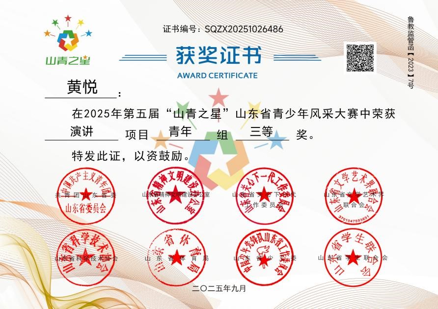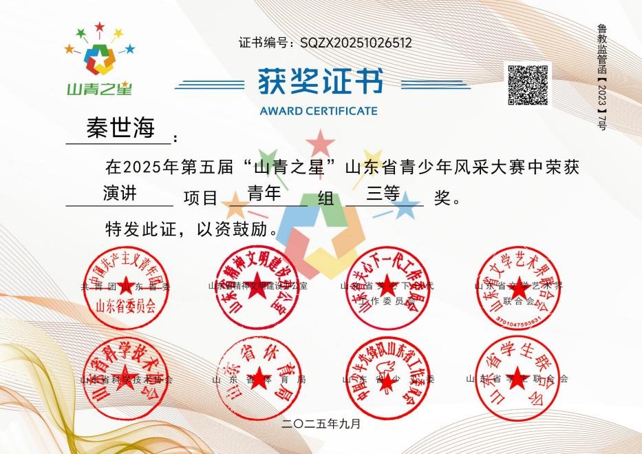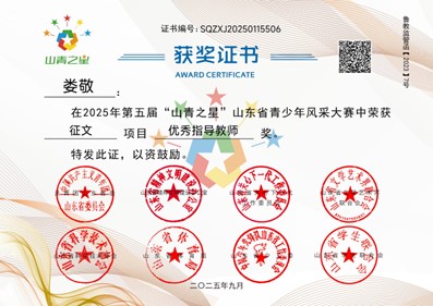 9月28日,山东省青少年宫协会正式发布《关于2025年第五届“山青之星”山东省青少年风采大赛获奖情况的通告》,文旅学子推报的作品斩获15项省级奖项,其中一等奖1项、二等奖3项、三等奖5项、优秀奖6项,娄敬获评“优秀指导教师”。