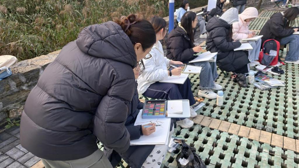 此次写生采用“日间采风+夜间研讨”的闭环模式,是动漫专业的重要实践教学环节。白天,师生们深入青石巷陌,实地写生;晚间则集中点评,在思维碰撞中精进技艺。