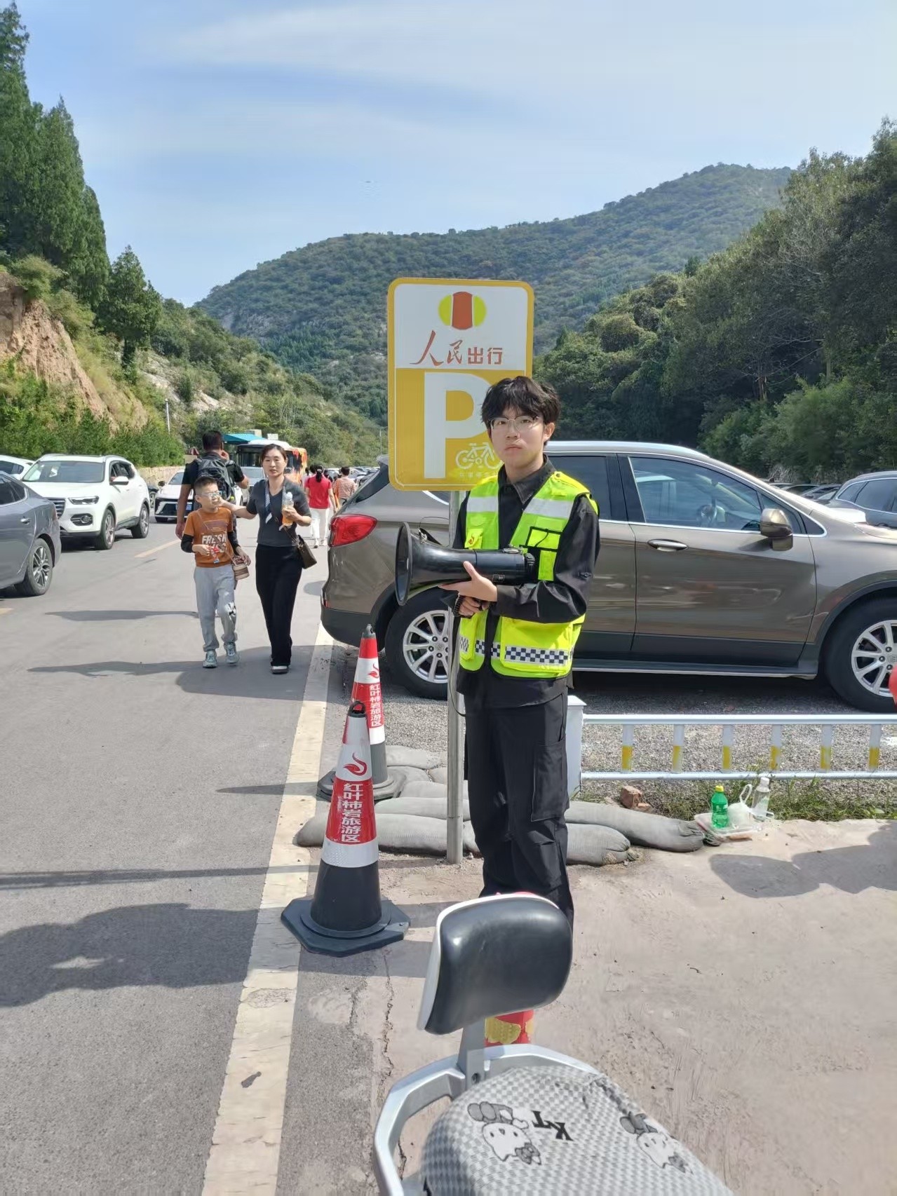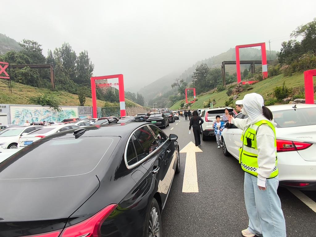 节日期间人流密集,志愿者们协助景区工作人员开展人流疏导,在关键节点引导游客有序通行,避免拥堵。特别是在狭窄步道、观景平台等区域,他们坚守岗位,确保游览安全有序。